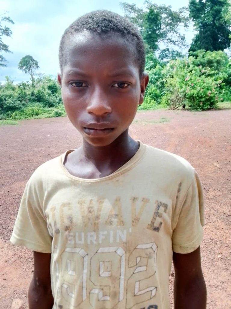 Hier sind wir bei Lazare und seiner Großmutter. Er ernährt sich von Heuschrecken, da es die Jahreszeit ist. Er lebt bei seiner Großmutter und seiner Tante und wird dieses Jahr sein Grundschulzeugnis vorlegen.